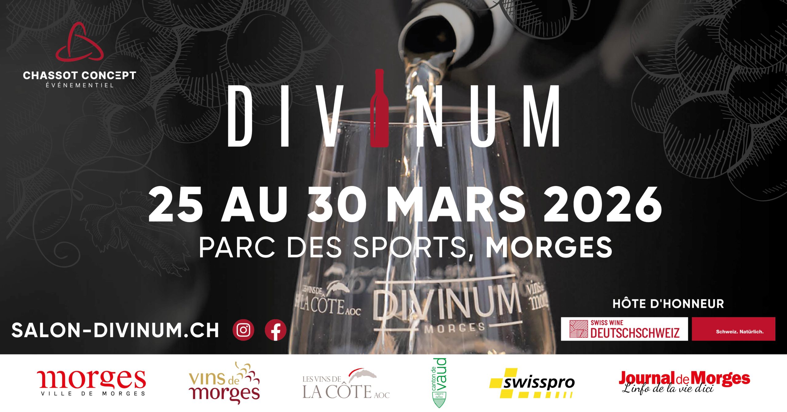 Cave de La Côte sera au salon des vins Divinum à Morges du 25 au 30 mars 2026.