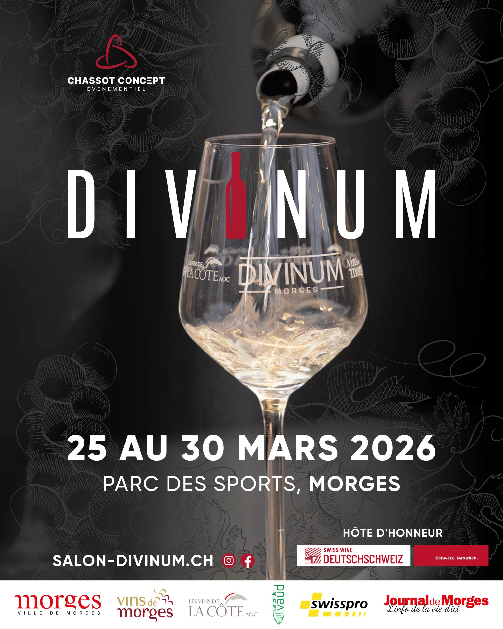 Cave de La Côte sera au salon des vins Divinum à Morges du 25 au 30 mars 2026.